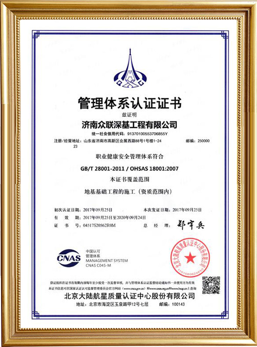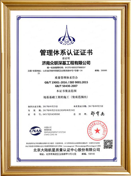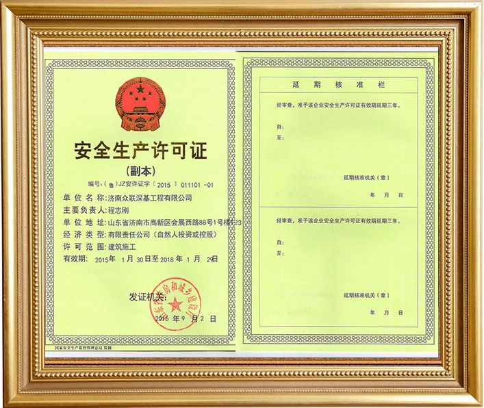 山東眾聯(lián)恒信工程集團(tuán)有限公司成立于2010年4月20日,注冊(cè)資金2000萬(wàn)元,固定資產(chǎn)8500萬(wàn)元,公司主要從事地基基礎(chǔ)、勘察、設(shè)計(jì)等方面的專業(yè)承包,地基基礎(chǔ)專業(yè)施工資質(zhì)壹級(jí)。